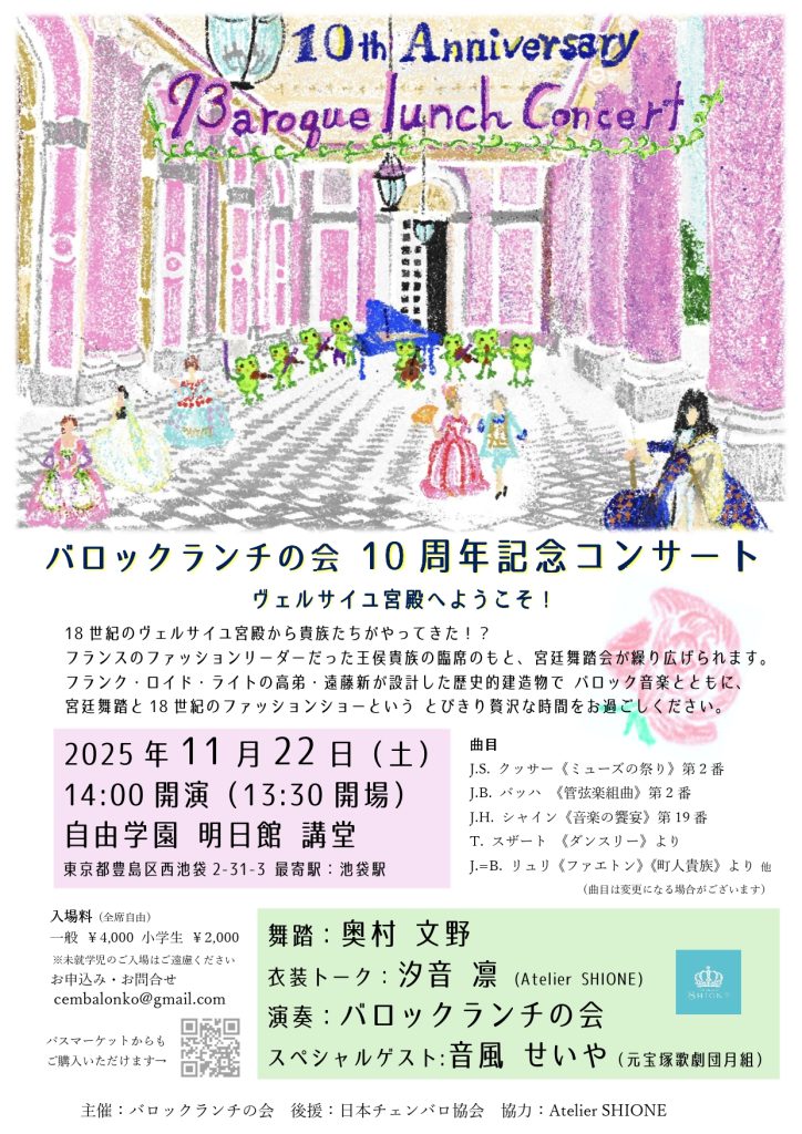 お問合せ・お申込み cembalonko@gmail.com(バロックランチの会)
