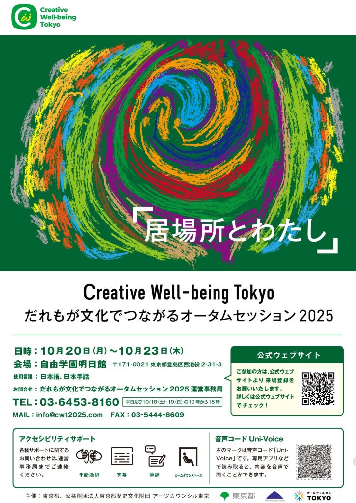 開催時間等は、だれもが文化でつながるオータムセッション2025のホームページ、またはクリエイティブ・ウェルビーイング・トーキョーのinstagram、Facebook にてご確認ください。