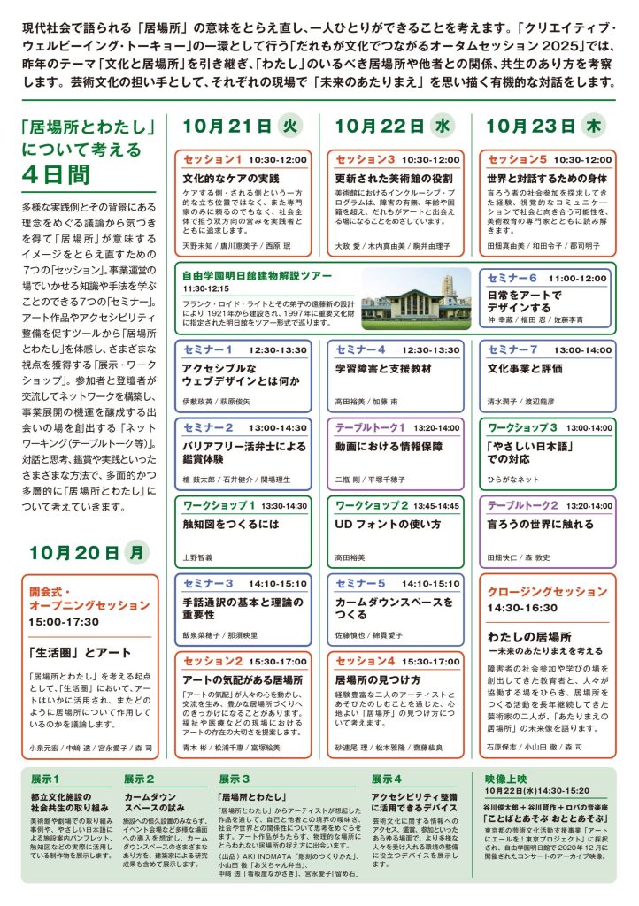 2025.10.20 ~10.23 クリエイティブ・ウェルビーイング・トーキョー だれもが文化でつながるオータムセッション2025