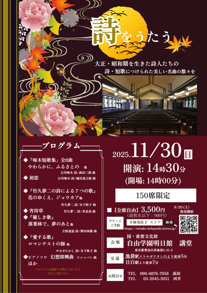 歴史ある建築、明日館講堂の静かな空間の中で、 響きと静寂が交わるひとときをご一緒に。