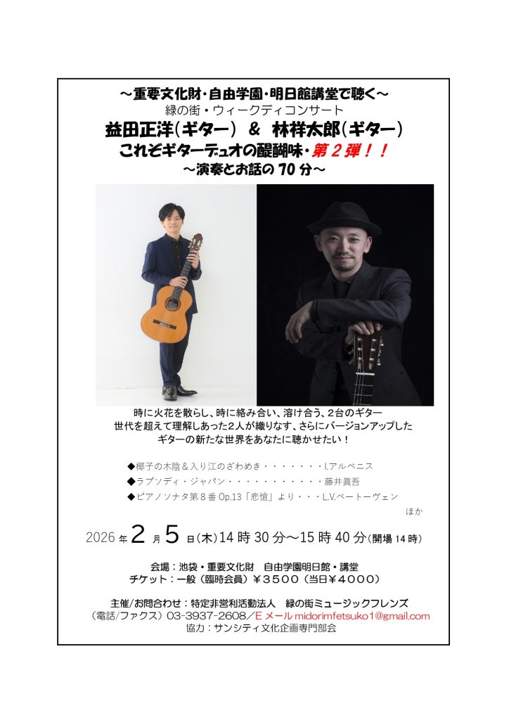 2025.02.05 重要文化財・自由学園明日館講堂で聴く ギターデュオ第2弾!!