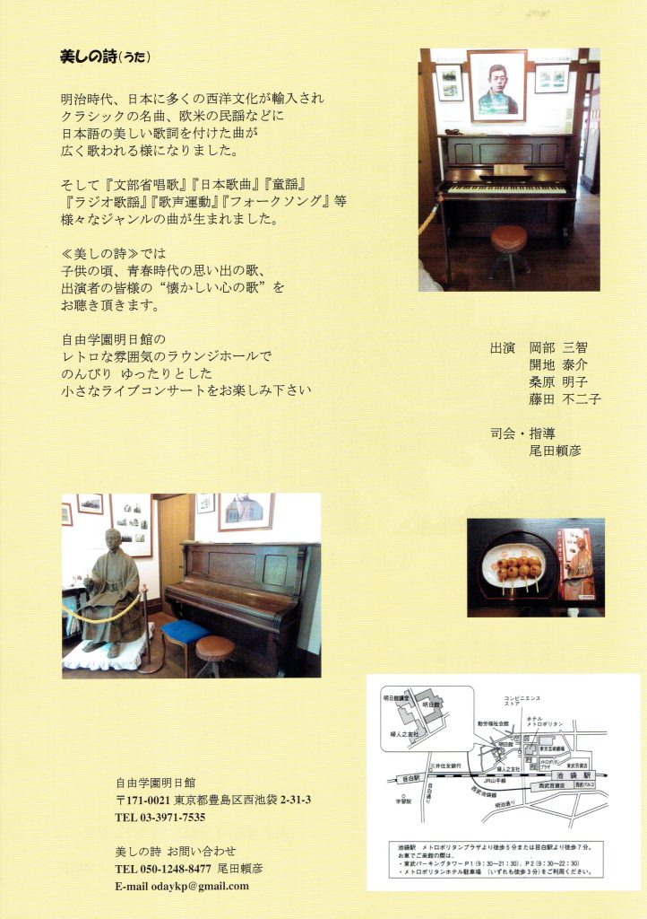 歴史ある明日館講堂にて長い音楽の絆と共に・・・