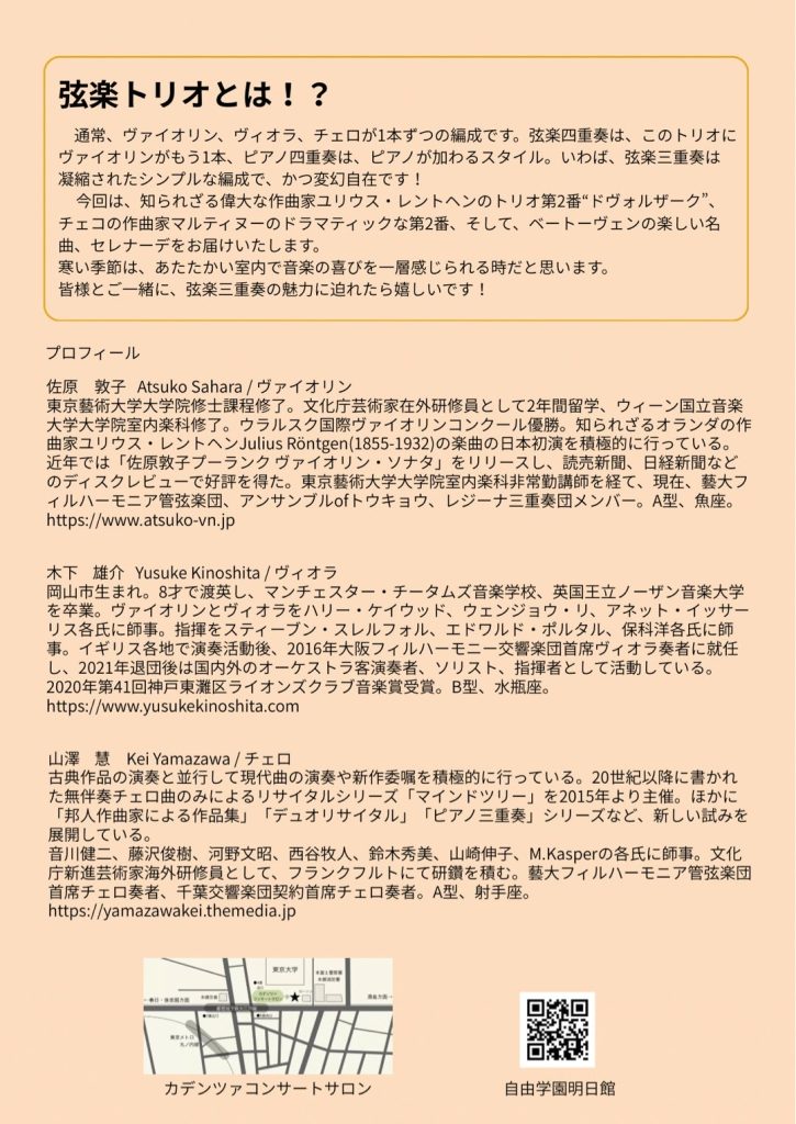 皆様とご一緒に、弦楽三重奏の魅力に迫れたら嬉しいです!