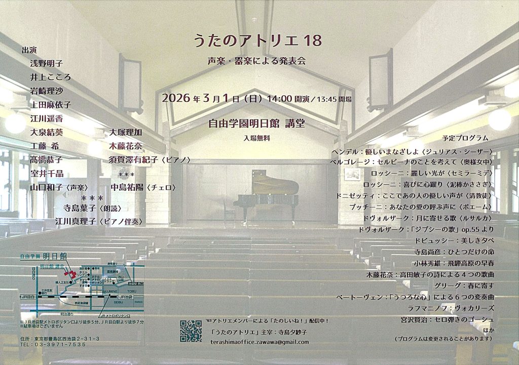 声楽・器楽・朗読による発表会です。