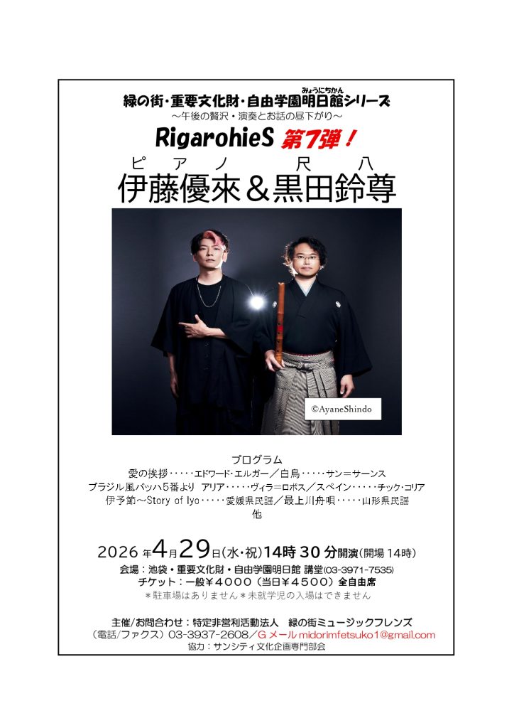 伊藤優來(ピアノ)、黒田鈴尊(尺八)